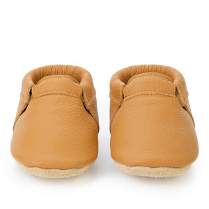 The Gingersnap moccasin is a rich, beautiful color that can be dressed up or down. A suede sole completes this darling shoe.