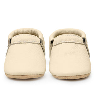 Our brand new Latte Fringeless moccs go with everything! These moccasins combine our popular Latte neutrals with a suede sole;