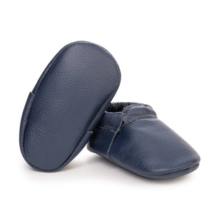 Navy never goes out of style! This deep blue moccasin is perfect for that special little one.