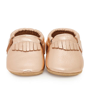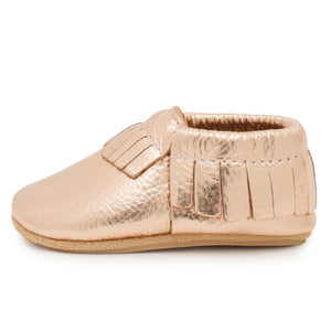 Beautiful Rose Gold adds a touch of on-trend style to every babe's outfit. Now available with a hard sole for little walkers.